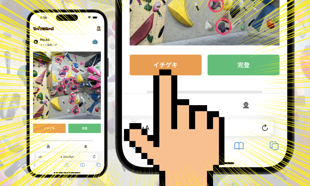 「ロード・オブ・ザ・ウォール」はボルダリングジムやクライミングジムの課題クリアをサポートするウェブアプリ。完登記録をスマホ上で簡単に管理。自分のアバターのレベルアップも楽しめます。